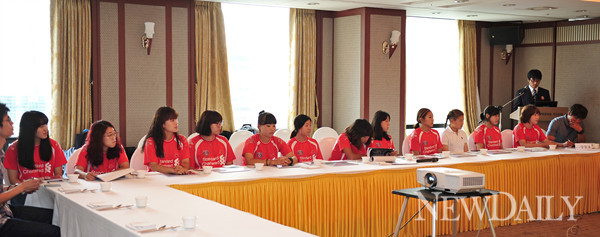 2일 서울시 중구 프레스센터에서 2012년도 대한럭비협회 기자간담회가 열렸다. 이날 기자간담회에는 신정택 회장과 이사진을 비롯 12명의 여자선수들이 참석했다.