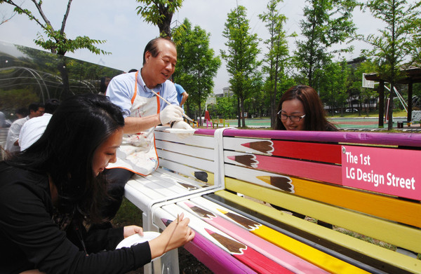LG 디자인 스트리트는 LG전자 디자이너 150여명이 참여해 주암체육공원의 벤치 40여개와 분수대 가벽을 새롭게 디자인해 재탄생한 공간이다. LG전자 디자이너들은 콘셉트 선정에서 시안, 밑그림, 채색, 설치 등 모든 작업을 직접 진행했다.