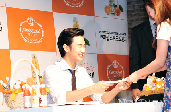 8일 오후2시 서울시 영등포구 타임스퀘어 엠넷펍에서 CJ제일제당 쁘띠첼 스퀴즈 오렌지 출시 기념 김수현 팬 사인회가 진행됐다.