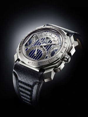 ‘옥토 마세라티’는 마세라티 고유의 푸른색과 M라인 차량 시트커버 디자인을 적용한 가죽 스트랩, 자동차 계기판을 연상시키는 수직 슬릿을 포인트로 디자인한 다이얼 등은 ‘마세라티 DNA’를 가진 시계라는 걸 나타내고 있다.