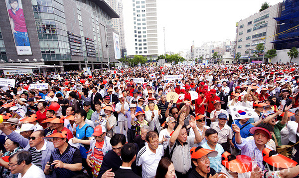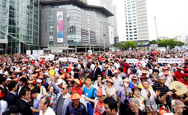 타임스퀘어 광장을 가득 메운 지지자들의 모습.
