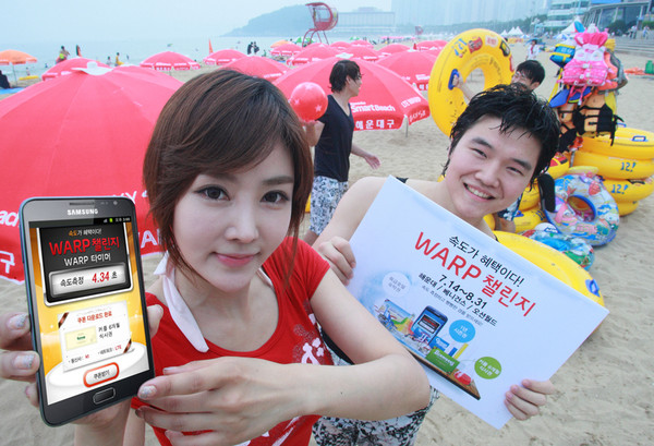 해운대에서는 오는 18일부터 31일까지, 8월 22일부터 8월 25일까지 약 2주간 ‘해운대 이벤트광장’에 설치된 전용부스에서 이벤트가 진행된다. 다운로드 속도에 따라 웨스틴조선 부산호텔 숙박권, 해운대푸드 상품권, 해운대 시설이용권 등 다양한 경품을 제공한다.