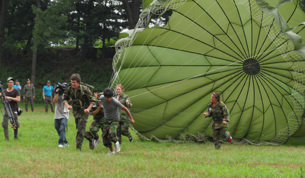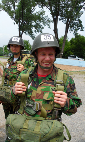 하늘에서 떨어질 때는 모르지만 낙하산은 꽤 큰 편이다. 이를 등에 지고 달리는 것은 보통 일이 아니다. 참가자의 얼굴에서는 이미 웃음기가 싹 가신 상태다.