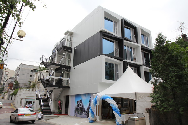 포스코A&C는 16일 청담동에 국내에선 처음으로 민간토지를 장기 임대해 계약종료 후 이축하는 방식으로 이동형 모듈러 하우스 ‘MUTO(뮤토) 청담’을 준공했다고 밝혔다.