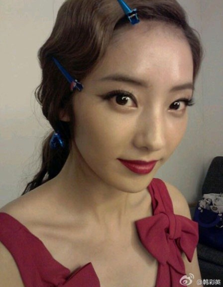 사진 속 한채영은 머리 손질에 한창인 듯, 파란색 핀 3개를 머리에 꽂은 채 카메라를 보고 있다. 사진을 접한 네티즌들은 "오똑한 코와 붉은 립스틱이 바비 인형을 연상케 한다"며 극찬을 아끼지 않는 분위기.