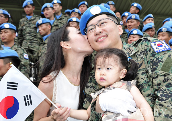 [포토] 레바논 파병, '동명부대' 11진 "여보 건강히 다녀와~"