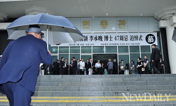 19일 서울 동작구 국립현충원 현충관에서 '건국대통령 우남 이승만 박사 제47주기 추모식'이 있었다.이날 추모식에는 강창희 국회의장, 박승춘 국가보훈처장을 비롯해 400여 명의 시민이 참가했다.