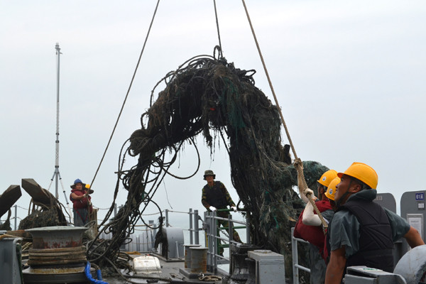 해군은 2008년부터 폐그물 인양작전을 시작했다. 2008년 70톤, 2009년 84톤, 2010년 81톤, 2011년 100톤 등 모두 315톤의 폐그물을 인양했다.