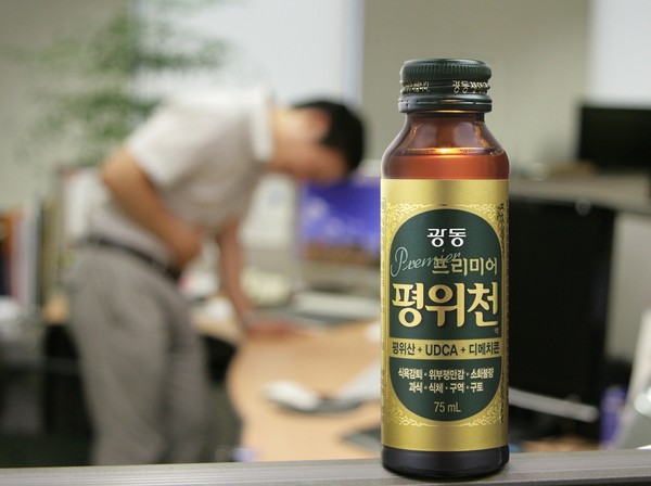 광동제약은 23일 기존 드링크형 소화제를 개선해 알약이나 과립제를 따로 먹을 필요가 없는 생약 소화액제 ‘프리미어 평위천’을 출시했다고 밝혔다.