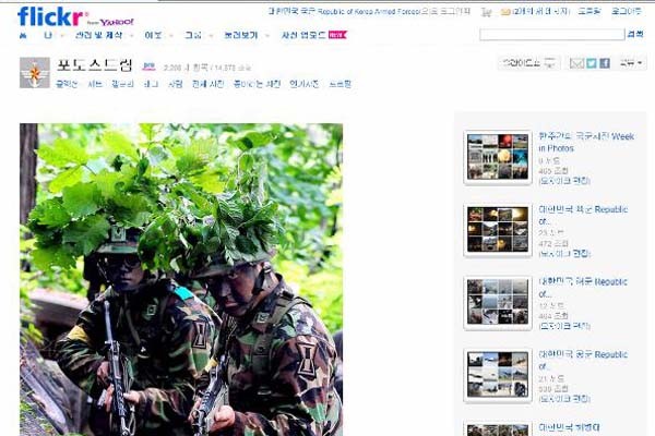 국방부는 지난 5월 플리커에 ‘대한민국 국군’ 채널(http://www.flickr.com/photos/kormnd/)을 열고, 2개월 동안 사진 선별작업을 해 지금까지 2,200여 장의 사진을 게재했다고 한다.