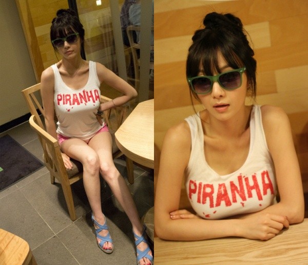 가수 정수정이 '피라냐 3DD' 티셔츠로 특유의 섹시미를 과시해 화제다.