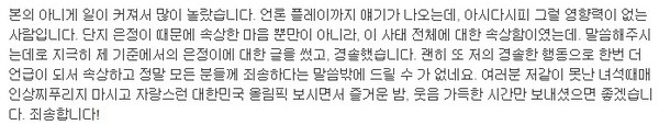 안재민은 "오랜 시간동안 같이 봐온 가족으로서 최근 은정이 '비난의 대상'이 되고 있는 데 대해 속상한 마음이 든다"며 "시간이 지나면 다 괜찮아 질 것"이라는 위로의 말을 건넸다.