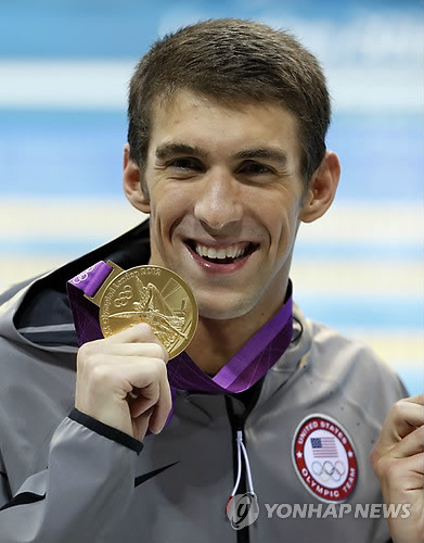 펠프스는 2일(현지시간) 영국 런던 올림픽파크 아쿠아틱센터에서 열린 2012 런던올림픽 남자 개인혼영 200m 결승에서 1분54초27의 기록으로 금메달을 목에 걸었다.