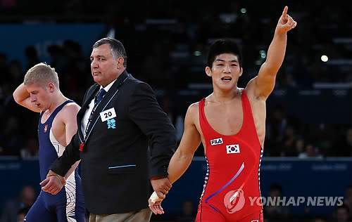 김현우는 7일(한국시간) 영국 런던의 엑셀 노스 아레나 제2경기장에서 열린 2012런던올림픽 남자 레슬링 그레코로만형 66kg급 8강에서 에드가라스 벤카이티스(리투아니아)를 꺾고 4강에 올랐다.