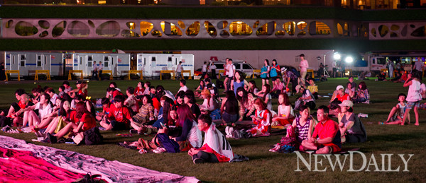 본격적인 응원이 펼쳐지는 10시가 가까워 오자 시민들이 모여들기 시작했다. 광장 주변으로 방송국 중계차와 음료와 응원도구를 판매하는 상인들도 등장했다.