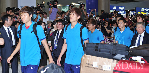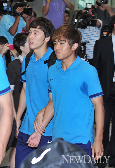 2012 런던올림픽에서 사상 첫 메달을 획득한 올림픽 축구대표팀이 12일 오후 인천국제공항을 통해 귀국했다.