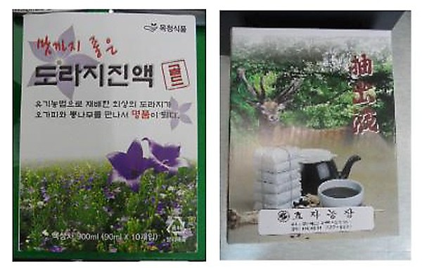 살구씨 사용… ‘맛까지 좋은 도라지 진액 골드’목통 사용… ‘효자녹용 엑기스’ 액상 추출 제품중독 및 강한 이뇨작용으로 식품에 사용 금지