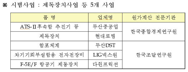 이번에 실시하는 시범 운영은 5개 사업부터 적용한다. 이 사업부터 민간 전문기관이 원가 검증을 실시하고, 2013년부터는 중소 하도급업체가 전문기관에 원가자료를 제출하도록 한다는 계획이다.