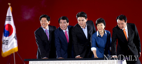 새누리당 대통령선거 후보자 지명을 위한 제2차 전당대회가 열린 20일 오후 경기도 고양시 일산 킨텍스에서 박근혜 후보를 비롯한 후보자들이 깨끗한 선거결과 승복과 공약 이행을 위한 서약 핸드프린팅을 진행하고 있다.