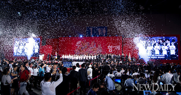 박근혜 후보는 수락연설에서 "국민대통합 길 가겠다"고 각오를 다졌다.