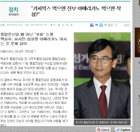 <한겨레>가 19일 백 전 사무부총장의 글에 대해 올린 기사 제목이다. "통합진보당 때 아닌 ‘커피’ 논쟁.. 백승우, 유시민·심상정 아메리카노 마시는 것 문제 삼아"라고 설명하기도 했다.