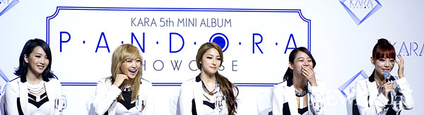 22일 오후 서울 광장동 쉐라톤그랜드워커힐에서 열린 미니앨범 '판도라(PANDORA)' 발매기념 쇼케이스가 열렸다. 이날 쇼케이스에서 카라(박규리, 니콜, 한승연, 구하라, 강지영)는 5집 미니앨범 수록곡을 최초로 선보였다. 또 '판도라' 뮤직비디오를 최초 공개했으며, 팬들과 함께 소통하는 시간과 이벤트도 가졌다.