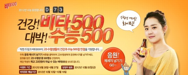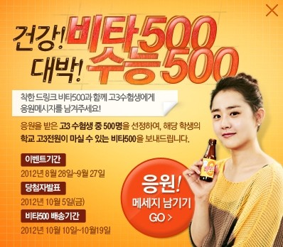 “비타민C 성분으로 인해 ‘착한 드링크’ 이미지를 갖고 있는 ‘비타500’을 통해 수험생들이 건강을 돌보고 이번 행사를 통해 지친 마음까지 조금이나마 위로받을 수 있기를 바란다.”