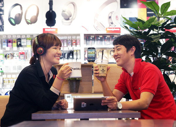 지난해 10월 오픈한 T월드카페 1호점(삼성역점)은 대리점과 커피전문점을 각각 운영할 때보다 이동통신 매출은 약 50%, 커피 매출은 약 20% 증가했다.