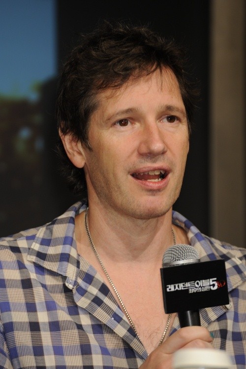 ■ 질문 = 남편과 아내와 한 영화에서 작업을 하는데 특별한 어려움은 없었는지 묻고 싶습니다. 특히 밀라 밀라요보비치씨는 액션 연기를 하면서 남편이 원망스러웠던 적은 없었나요? 배우와 감독로서 또는 아내와 남편으로서 서로를 바라보는 시각도 궁금합니다. 개인적인 질문 하나 드리겠습니다. 감독님이 상당히 젊어보이시는데 나름의 젊게 보이는 비결이 있다면 말씀해 주세요. 또 밀라 요보비치씨가 영화 초반 아슬아슬한 하얀색 옷을 입고 나온는데, 여기에 특별한 이유가 있는지도 알고 싶습니다.