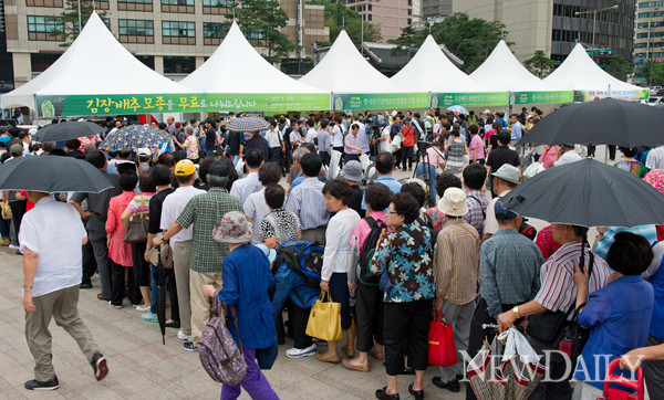 4일 오후 1시 서울 시청앞 광장에서 '김장배추 모종 나눔행사'가 열렸다. 시민들은 오전 10시부터 배추 모종을 받기 위해 길게 줄을 섰다.