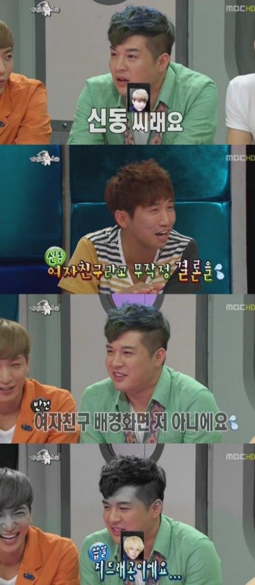 신동이 지드래곤을 질투했다. 이유는 자신의 여자친구의 휴대폰 바탕화면이 지드래곤이기 때문.
