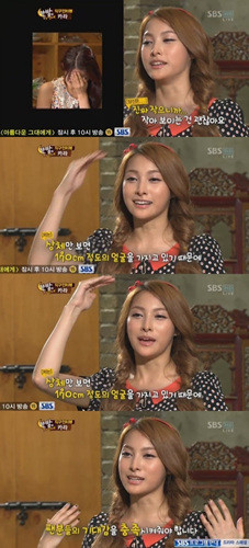 박규리는 "승연 씨 같은 경우는 작아 보이고 진짜 작다 그건 괜찮다"며 "난 상체만 보면 170cm 정도 돼 보이는 얼굴을 가지고 있기 때문에 팬 분들의 기대감을 충족시켜줘야 한다"며 하이힐을 자주 신는 이유를 고백했다.
