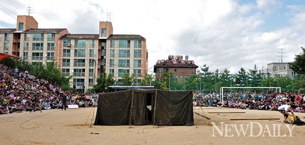 8일 오후 3시 서울 양천구 신원초등학교에서 '24인용 군용텐트 혼자서 치기(T24)'가 열렸다.