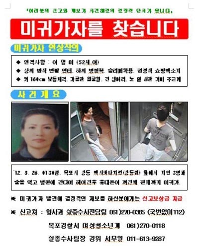 목포 경찰서가 사라진 지 보름째 된 50대 여성을 공개수배했다.