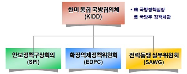 한미통합 국방협의체(KIDD)는 2011년 10월, 제43차 SCM에서 SPI(한미 안보정책구상회의), SAWG(전략동맹 2015 공동실무단회의), EDPC(확장억제정책위원회) 등 기존의 여러 한‧미 협의체를 통합한 협의체다.