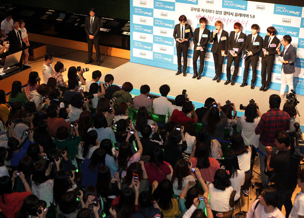 이날 인피니트는 삼성 갤럭시플레이어 5.8의 특장점을 직접 설명하고 판매해 고객들에게 특별한 경험을 선사했다.