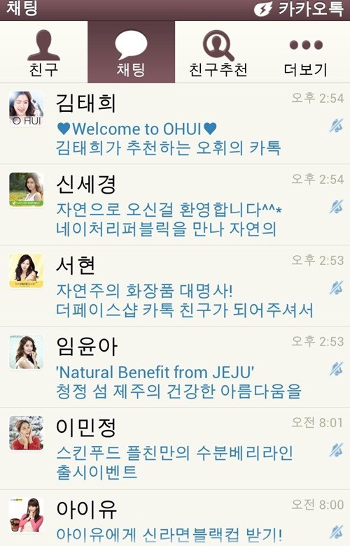 이는 카카오톡 광고 홍보용 ‘플러스 친구’들로 말을 걸어도 대답을 하지 않는다.