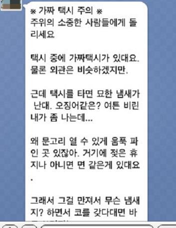 12일 현재 주요 포털사이트 게시판과 트위터 등에는 ‘가짜 택시’, ‘가짜 택시 주의보’라는 제목의 게시물들이 올라와 있다.게시글의 내용은 섬뜩하다.