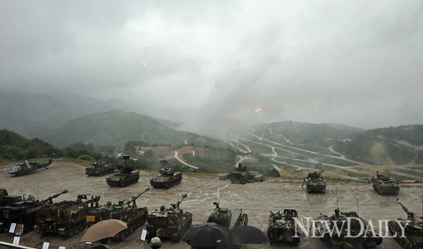 이날 훈련에는 7군단장을 비롯 외국군 관계자, 경기도 지역주민, 안보단체 회원, 초중고교 학생 등 2천여명이 참석했다.