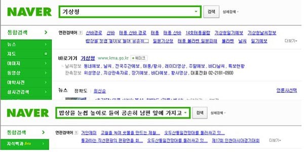 포털 '네이버'에서 기상청을 검색하면 연관검색어로 '밥상을 눈썹 높이로 공손히 들어…'라는 연관검색어가 뜬다. 이는 사자성어인 '거안재미(擧案齋眉)', 즉 '아내가 남편을 극진히 대접하고 따른다'는 뜻이다.
