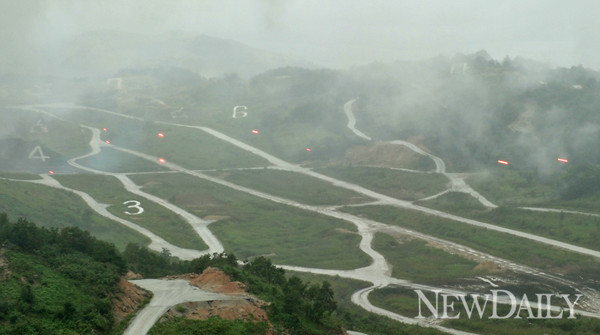 통합화력전투훈련은 경기도 포천에 위치한 공지합동훈련장 ‘승진훈련장’에서 7군단장 주관으로 열렸다. 훈련은 첨단화기별 위력사격, 기동군단의 공격작전 및 사격 순으로 50분 동안 진행됐다.