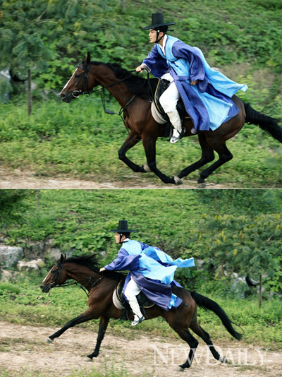 지난 13일 방송을 통해 선보인 이 장면은 ‘은오’(이준기)가 어지러운 마음을 달래기 위해 말을 타고 달리는 장면. 평소 마음이 복잡할 때 말을 타고 산으로 강으로 나서는 ‘은오’에게는 이것이 스트레스 해소법인 셈이다.