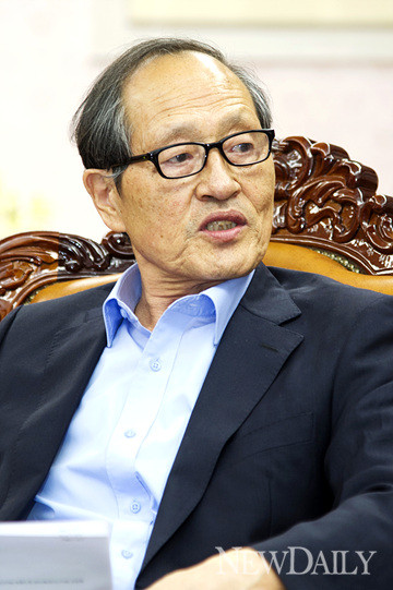 - ▲ 강창희 국회의장이 뉴데일리 인보길 대표의 질문에 답변하고 있다. ⓒ양호상 기자