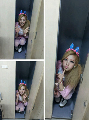 리지의 캐비닛 사진이 화제다.애프터스쿨의 유닛 그룹인 오렌지캬라멜 멤버인 리지는 17일 자신의 트위터에 "우하하 캐비닛 속에 쏙쏙 들어가지롱"이라는 글과 함께 한 장의 사진을 게재했다.