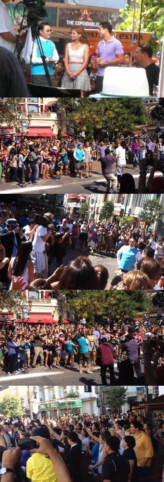 전세계적인 대세 가수 싸이를 위해 수백 명의 미국 LA시민이 '강남스타일' 플래시몹 펼쳤다.
