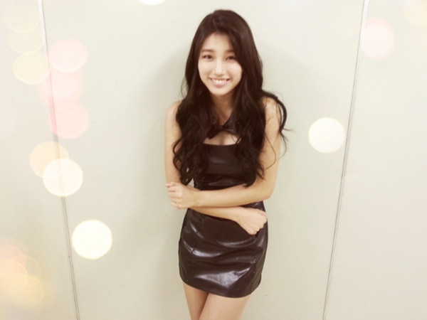 공개된 사진 속 수지는 검은색 미니드레스를 입은 채 벽에 기대어 환한 미소를 짓고 있다. 특히 사진 속 수지는 청순한 얼굴에 가슴 라인이 살짝 드러나는 섹시한 의상으로 볼륨감 있는 몸매를 드러내 남성 팬들의 마음을 사로잡았다.