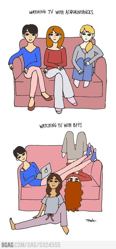 공개된 절친끼리 TV 볼 때 그림 속에는 그냥 아는 사람과 절친이 TV를 볼 때 어떻게 다른지 확실하게 보여주고 있다.