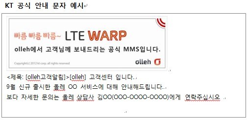 공식 안내 전화 시 ‘016-114-XXXX’ 또는 ‘02-720-0114’로 표시공식 안내 MMS… 상담사 실명·연락처 등 배너 이미지에 삽입