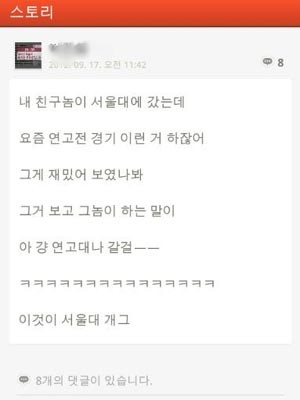 "요즘 연고전 경기 이런 거 하는데 그게 재미있어 보였나봐. 그거 보고 그 친구 하는 말이 '아, 그냥 연고대나 갈껄' 이러더라."
