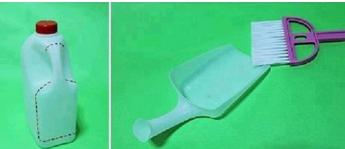 사진 속에는 플라스틱 우유통이 쓰레받이 등 다양한 용도로 변신하는 모습이 담겨있다. 게시자는 우유통의 손잡이와 이어진 몸통 부분을 사각형 모양으로 잘라낸 뒤 쓰레받이로 만들어 눈길을 끌었다.